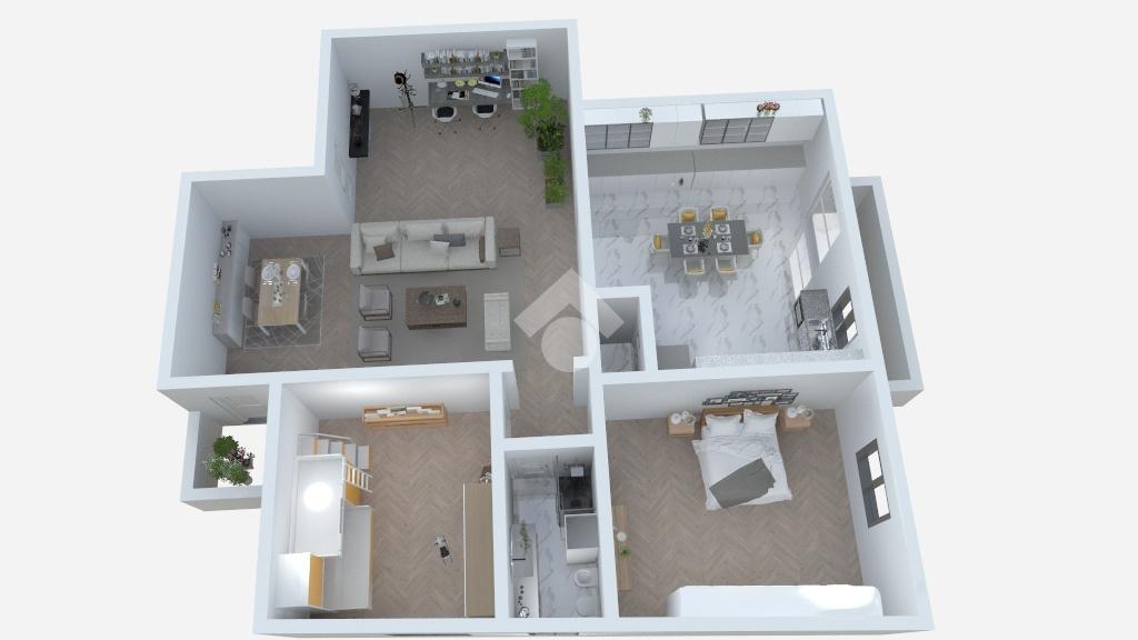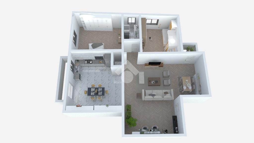 E' composto da un ingresso, una comoda zona living con terrazzino, un'ampia cucina di ca 20 mq che accede ad una terrazza, due stanze matrimoniali, un bagno completo finestrato ed un ripostiglio.