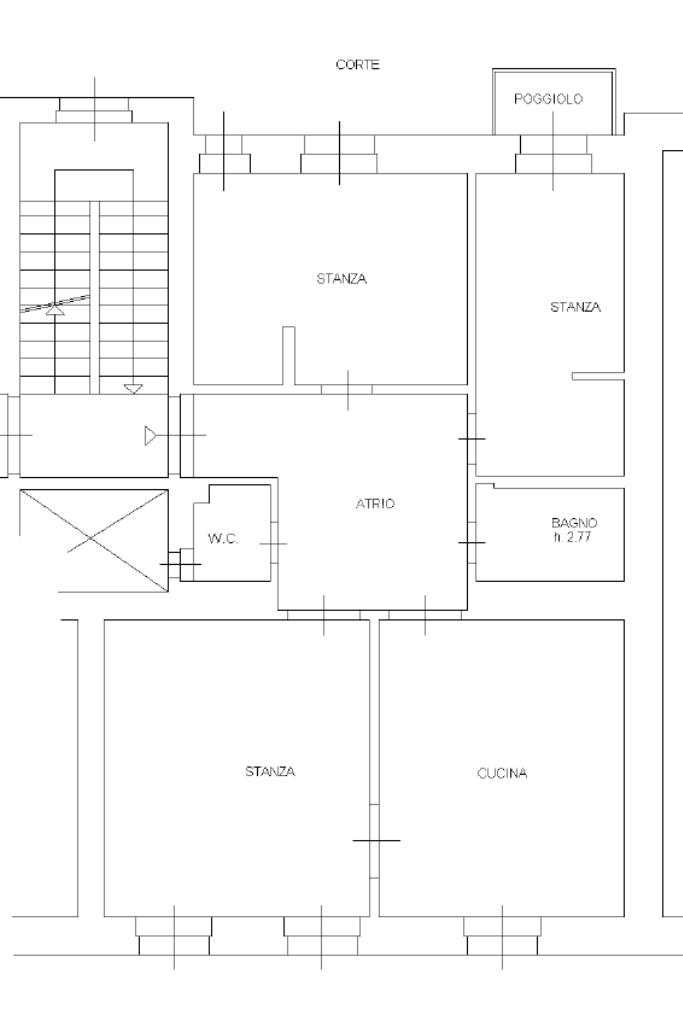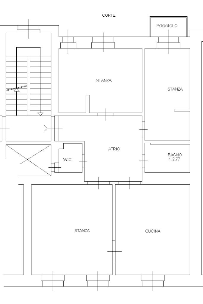 L' appartamento è cosi' composto: un ampio soggiorno, una cucina abitabile,un bagno e wc separati, una grande camera da letto e una cameretta con poggiolo.