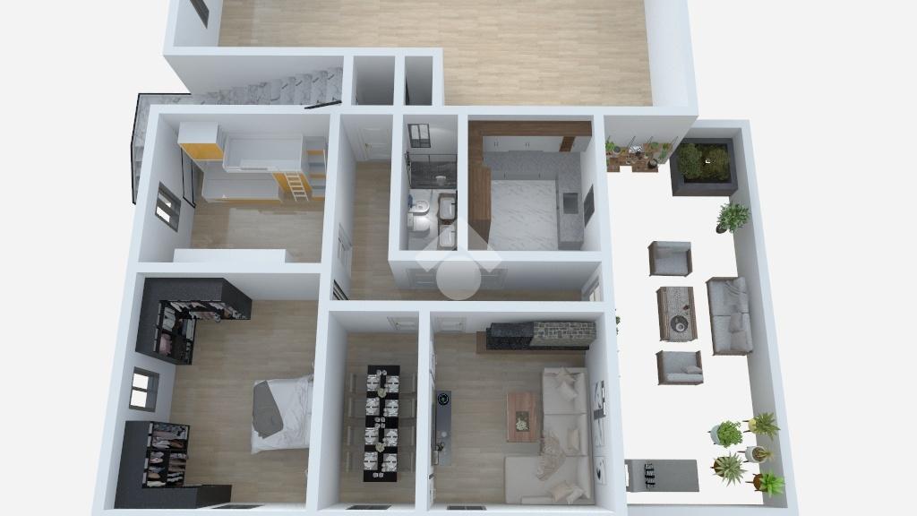 La casa è così composta: al piano terra, un locale d' affari accompagnato da un piccolo alloggio con cantina. Al primo piano, un alloggio piu' ampio con un generoso terrazzo e una grande soffitta.